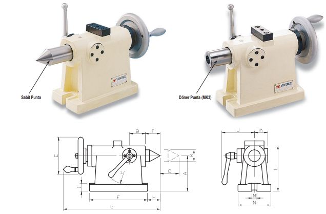 Yukarıdaki tabloda listelenen modeller uygulanabilir metallerin örnekleridir. Döndürülebilir tablanın merkez yüksekliği ve bölme başlıkları gezer puntanın yükseklikleriyle aynı olmalıdır.